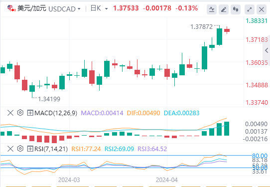 4月15日,周一欧市初盘,美元/加元在新一周的第一天面临一些抛售压力,并侵蚀了周五强劲上扬至1.3785区域的部分涨幅,这是自11月14日以来的最高水平。现货价格目前交投于1.3760-1.3755区间附近,但在美元潜在的强烈看涨情绪下,该货币对任何有意义的修正性下跌似乎仍难以实现。