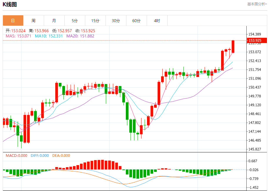 周一盘中,美元/日元报153.935,涨幅0.42%。