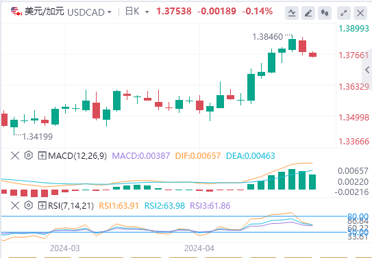 由于加拿大央行(BOC)的鸽派情绪,加元的升值可能是短暂的,这可能会减轻美元/加元货币对的损失。人们预期加拿大央行将在6月份降息25个基点。周二公布的加拿大通胀数据喜忧参半,进一步强化了这种情绪。