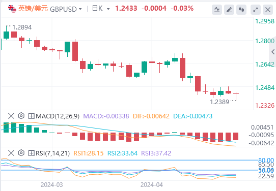 英镑/美元在1.2400附近找到临时支撑。由于担心中东紧张局势进一步升级,市场情绪转向风险厌恶,英镑近期前景依然疲软。据路透社援引几位美国官员的话报道,以色列在周五亚洲早盘时段用无人机对伊朗的袭击进行了报复。伊朗国家媒体称,防空系统在中部城市伊斯法罕上空击落了三架无人机。