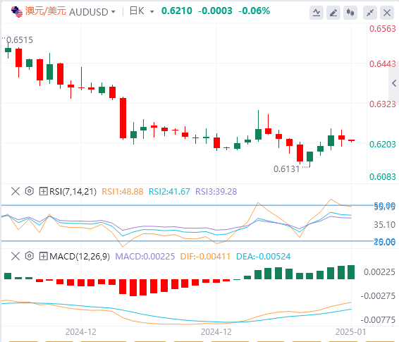 澳元/美元周五在0.6220附近交易,试图突破日线图上的下降通道。成功突破将削弱普遍的看跌偏见。14天相对强弱指数(RSI)也呈上升趋势,接近50水平,表明潜在的复苏势头。