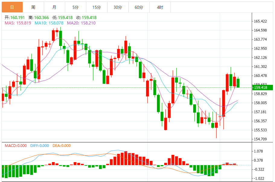 今天的预期交易范围:在159.40和160.90之间