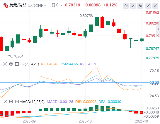 与此同时,尽管对瑞士经济前景的担忧日益加剧,但瑞士法郎(CHF)交易总体平静。瑞士国家经济事务秘书处(SECO)在其10月份的展望中证实,今年经济将仅增长1.3%,低于历史平均水平。该机构还将2026年国内生产总值(GDP)增长预测从此前预期的0.9%下调至1.2%,凸显2025年下半年将大幅失去动力。