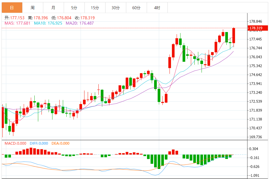 技术上,欧元兑日元今天上午以强劲的看涨交易开始,反弹至177.05水平以上,表明主要看涨趋势的延续,达到创纪录的177.75水平。