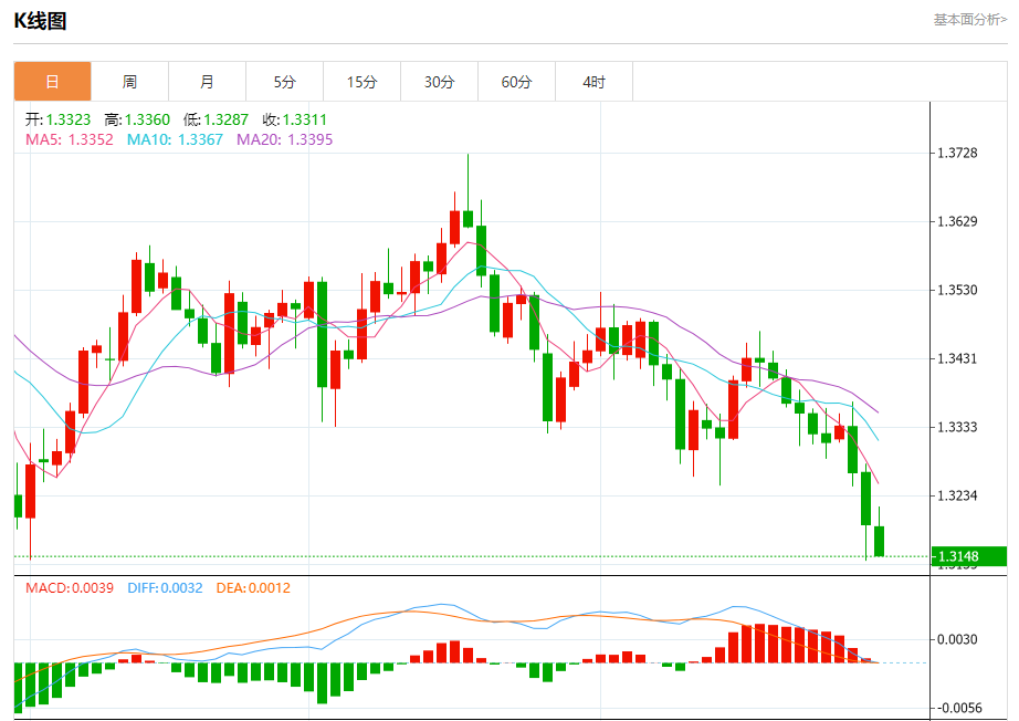 支撑位:1.3170 1.3140 1.3120