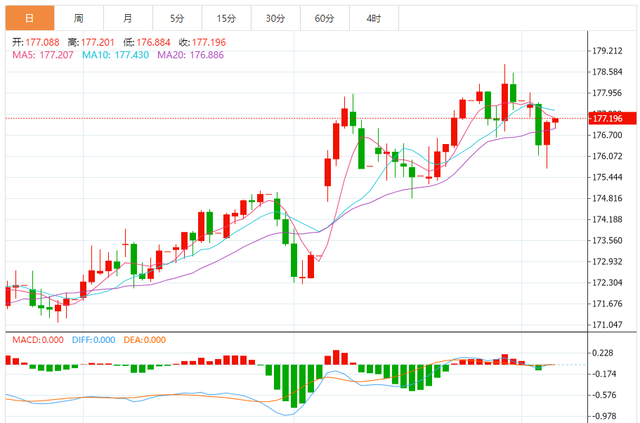 今天的预期交易范围:在176.65和177.95之间