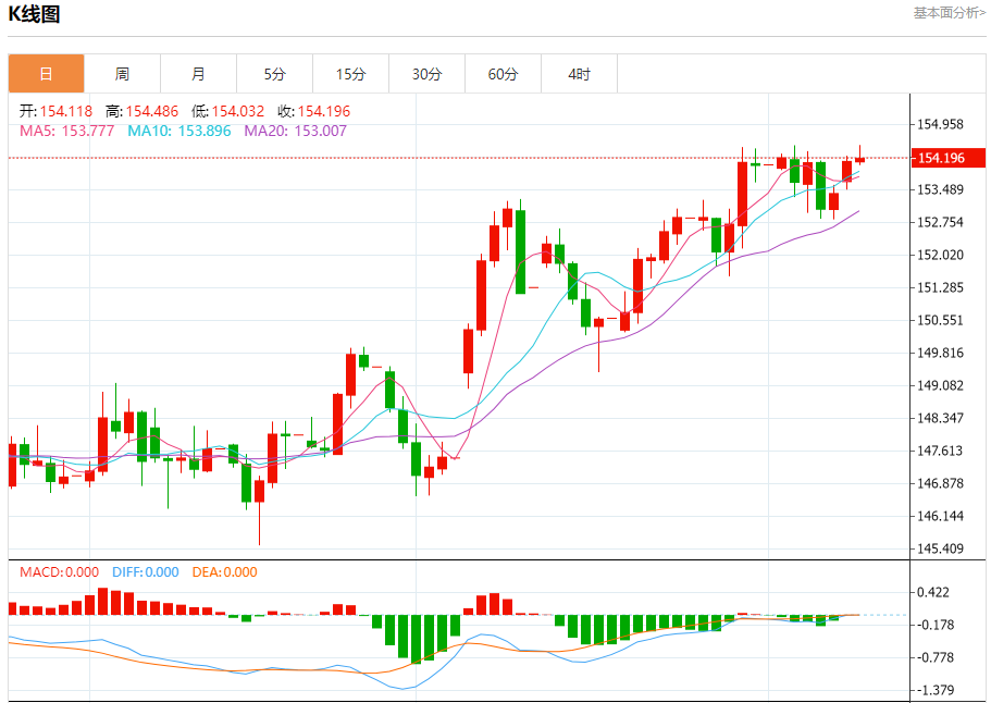 周二盘中,美元/日元报154.196,涨幅0.05%。