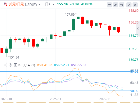 与此同时,日本央行收紧的前景,加上新任首相高市早苗的再通胀推动,使得日本超长期国债(JGB)承受压力。日本与其他主要经济体之间的汇率差距缩小,可能进一步有利于收益率较低的日元。另一方面,美元在接近自十月底以来的最低水平徘徊,外界对美联储下周再次降息的押注增加。这反过来表明美元兑日元阻力最小的路径是向下。