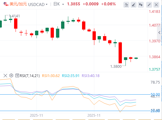 与此同时,加拿大央行预计将维持2.25%的利率稳定,显示加拿大劳动力市场正在回升。9月至11月期间,加拿大经济创造了180.6万个新就业岗位,继7月至8月释放10.63万名工人之后。失业率也从10月的6.5%降至11月的6.9%。