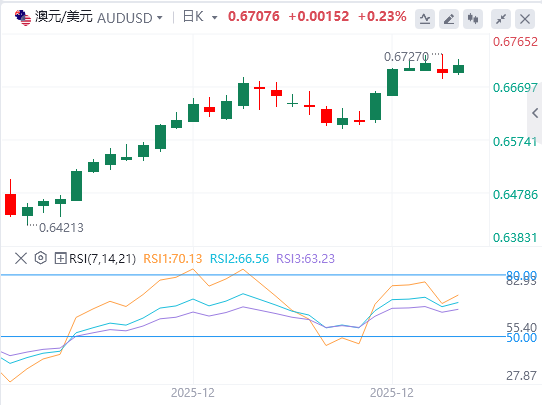 12月30日,澳元/美元汇对在周二欧洲交易时段小幅上涨,至接近0.6710。随着澳元升值,澳元升值,预计澳大利亚储备银行(RBA)将在2026年收紧货币政策。