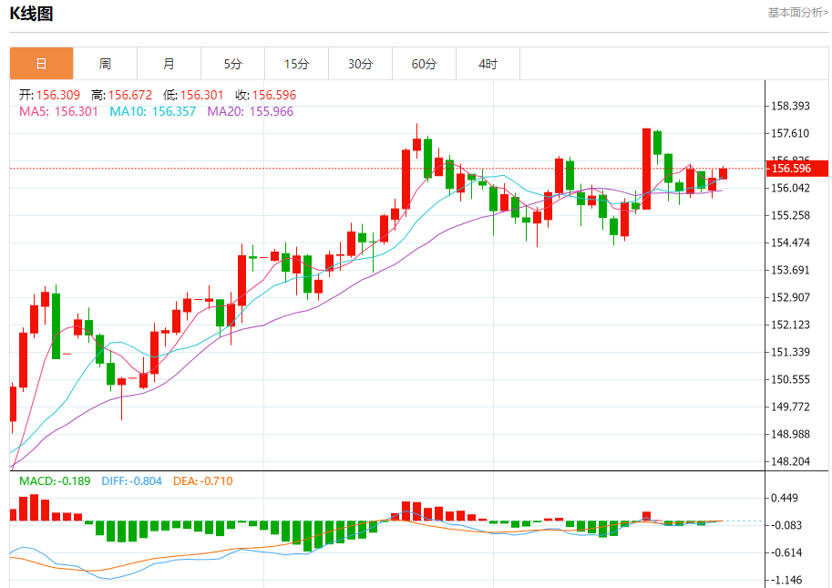 周三盘中,美元/日元报156.583,涨幅0.14%。