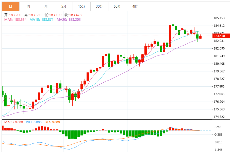 今天的预期交易范围:在182.80和183.60之间