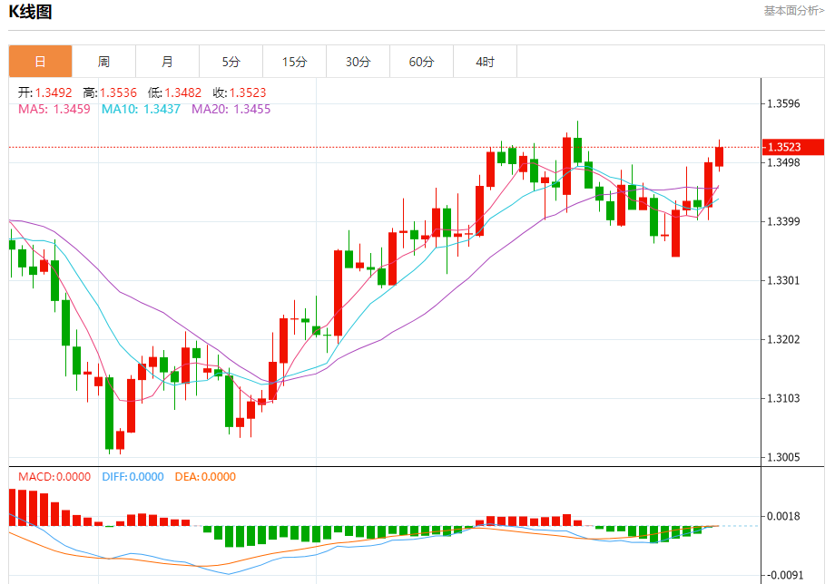周五盘中,英镑/美元报1.3526,涨幅0.21%。