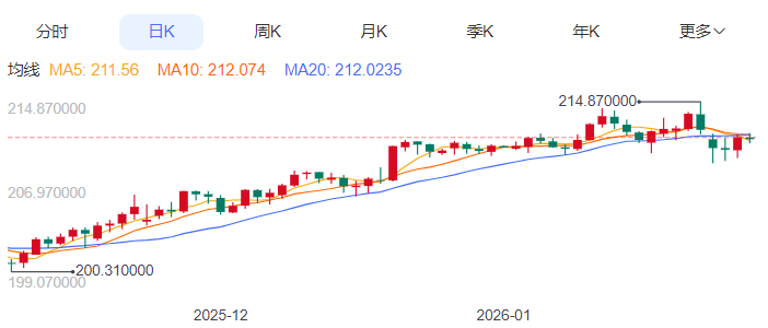 周四,英镑/日元下跌0.01%至211.81附近。