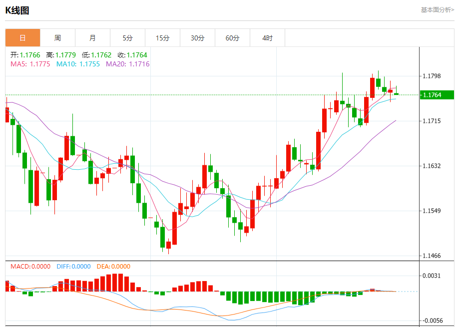 周二盘中,欧元/美元报1.1763,跌幅0.08%。 今日分析:在1.1750之上,看涨,目标价位为1.1790,然后为1.1805。 技术点评:即使我们不能排除持续调整的可能性,其时间长度上,应该是有限的。 支撑位:1.17501.17351.1720 阻力位:1.18201.18051.1790 (亚汇网编辑:冰凡)