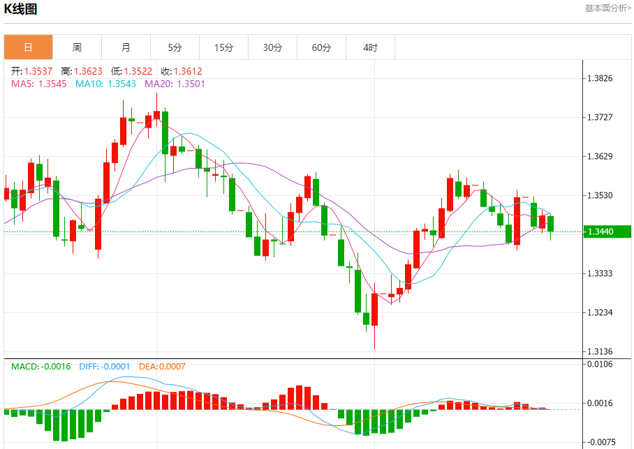 周三盘中,英镑/美元报1.3439,跌幅0.27%。 今日分析:在1.3465之下,看跌,目标价位为1.3410,然后为1.3385。 技术点评:跌破1.3465,为空头信号,向下的目标将会是1.3410。 支撑位:1.34101.33851.3360 阻力位:1.35201.34901.3465 (亚汇网编辑:冰凡)