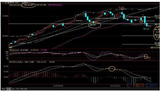 ÈÕÏß¼¶±ð£ºÕðµ´Ïµø£»»ã¼ÛÁ¬ÐøËĸùÒõÏߣ¬ÇÒÓÐÁ½¸ù´ø½Ï³¤µÄÉÏÓ°Ïߣ¬°µÊ¾ÉÏ·½Âôѹ½ÏÇ¿£¬¸ôÒ¹¸üÊÇÊ§ÊØÁË2ÔÂ11Èյ͵ã96.61¸½½üÖ§³Å£¬¿´¿ÕÐźÅÓÐËù¼ÓÇ¿£»KDJËÀ²æÐźÅÑÓÐø£¬MACDÒ²Óнá³ÉËÀ²æµÄÇ÷ÊÆ£¬ÔÚÊÕ¸´96.61ǰ£¬ºóÊÐÆ«Ïò½øÒ»²½ÏÂ̽²¼ÁÖÏßÖйì96.29¸½½üÖ§³Å£¬ÉõÖÁÊÇ96ÕûÊý¹Ø¿Ú¸½½üÖ§³Å¡£