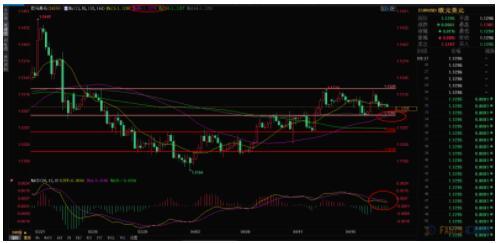 4小时级别:小周期级别来看,还没有明确走弱迹象,基本上维持在1.1280-1.1320这40点的箱体中间运行,汇价在突破前期箱体最高点后阻力变成支撑。