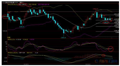 周线级别:震荡;MACD死叉,KDJ金叉,后市走势变数较大,继续留意1266.20-133区域的突破情况,进一步参考1270-1300区域突破情况;鉴于此前金价在1270附近获得支撑,KDJ指标在震荡行情参考意义略高,短线偏向试探1300整数关口附近阻力,若进一步上破,则增加看涨信号。