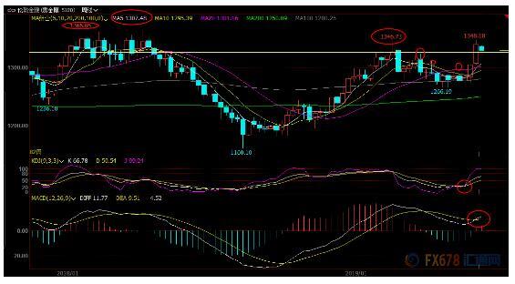 解析:金价未能有效顶破1346附近阻力,需要提防双头顶的形成,而美国和墨西哥达成贸易协议,欧美股市普遍上涨,打压了黄金的避险需求,而且市场对本周美国零售数据的预期比较乐观,金价短线面临调整风险;但中线金价技术面偏向多头。