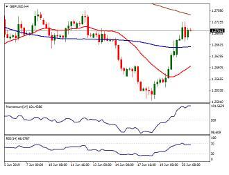 汇价目前位于1.2700附近,接近日高1.2726;短期看涨,4小时图汇价收盘于20和100SMA上方,最短均线上行,200SMA继续下行,位于现价上方,目前位于1.2750附近,而1.2760为更重要的阻力,过去三周汇价均未能突破该位。技术指标接近日高,触及超买,略失去上行动能,风险维持上行。