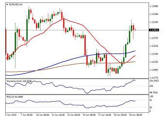 技术上,汇价连续第二日收涨,不过汇价无法突破1.1300,表明多头尚未完全回归。4小时图显示汇价仍高于所有均线,20SMA看涨,远低于现价。动能指标自超买区域小幅回落。RSI自极致水平走低,目前持稳于64附近。若汇价跌破短期支持1.1260则将出现更大幅度跌势,而若突破1.1315多头将主导市场。