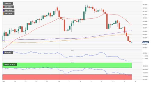 澳元/美元看跌趋势仍强劲,澳元/美元日线收跌,自数周高位0.7047回撤。短线澳元/美元料将持续下跌,4小时图显示澳元/美元处在均线下方,技术指标维持在超卖当中,动能指标试图反弹,但相对强弱指标方向不明朗。只要澳元/美元维持在0.6950下方,则空头将占主导。