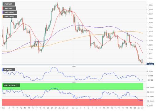 欧元兑美元位于1.1140附近,受阻于1.1150和1.1160之间。年内低点1.1105构成短期支持,如破将跌向1.10心理关口。4小时图技术指标显示风险仍偏下行,20SMA几乎直线走低,远高于现价,低于更长均线,技术指标位于年内低点,动能指标缺乏方向,RSI温和反弹,但位于超卖水平。