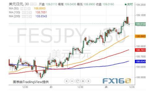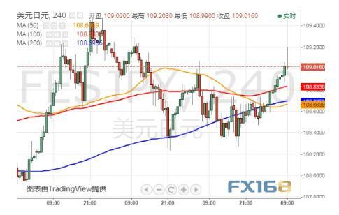 从日线图来看,美元/日元在109.00关口附近,并测试了200日均线。在过去三个月中,美元/日元一直在走强。