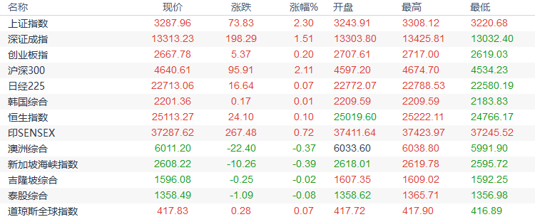 亚洲股市行情一览