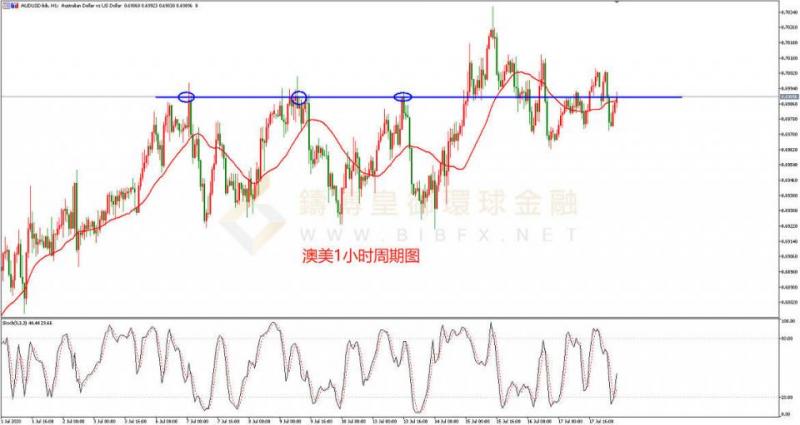 从澳美1H走势图上看,行情的结构性非常明显,目前正围绕着前期箱体高点延长线做上下整理。但是近几日的整理力度相较于前期要弱很多,形成了小箱体整理。操作上依然以高抛低吸为主,注意围绕着0.6988一线,线上做空,线下做多,切忌追涨杀跌。稳健的投资者依然可以选择以突破上方高位为进场信号做突破单。