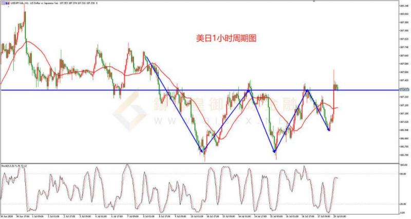 从美日1H走势图来看,美日已经从前期的高位整理结构来到了下方的新整理区间,目前在区间内震荡整理。但是,从今天的表现来看,美日的技术底部在不断抬高,且上攻的动能在不断集结。后期日元大有冲破前期高点并回到上方箱体的可能性。建议大家积极在低位支撑处布局多单,等待市场向上突破。