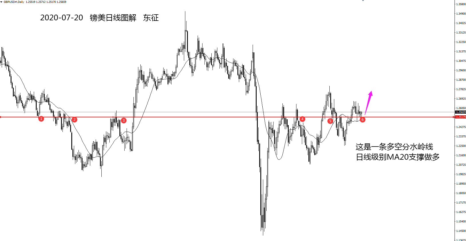 我在图中的多空分水岭线,说白了也就是顶底转换线,价格每每到这价格区域,往往要发生反转。此时镑美已经再次站上顶底转换线之上,那理应做多。更有甚者是,竟然日线级别的MA20也在该区域,在图中可以看到镑日已经在该均线上方震荡多日,迟迟下破未得。两种指标共振,我东征岂能不做多。天时地利人和,配上你的仓位那就是妥妥地。