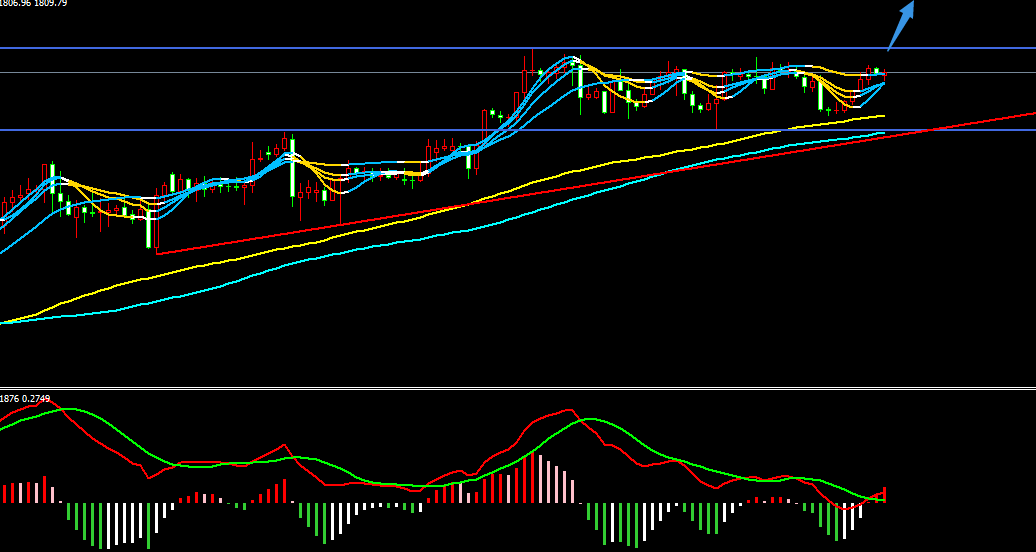 金价上周来看,整体走出以1815-1790之间的震荡格局,洗盘明显,在周四价格下跌以后,周五再次收复阵地,重回震荡上升中,整体来看多头没有任何改变,在从日图来看,价格连续压制于1815下方,同时收于1800以上,从趋势来看上升趋势并没有发生明显的改变,短期价格仍然运行于上升趋势线中,而从近期的运行来看,投资者最头疼的是人价格到底会不会上破,会不会1818形成阶段性顶,从整个运行来看,我们可以假设,第一价格运行在趋势线上,没有顶部的意思,第二如果是顶,根本不会在高位连续形成这种震荡,所以这种可以排除,而当下还有一点需要注意的就是反复震荡,破高下跌,破低上涨,针对这一点从战术上来来解决就是不追高,尽量以回落多为上,在趋势没有转折之前任何空单都放弃,因为战略上的成功可以忽略战术上的失败,战术上的成功无法挽回战略上的失败,今天跌明天涨是很正常的事,别把一天的下跌看的太过认真,我们需要理性的去判断,去验证我们的疑问和正确。市场什么情况都会出现,往往出现的情况是你想不到的,也就因为是你想不到的才导致你亏损。是因为你忘记了这方面的风险。