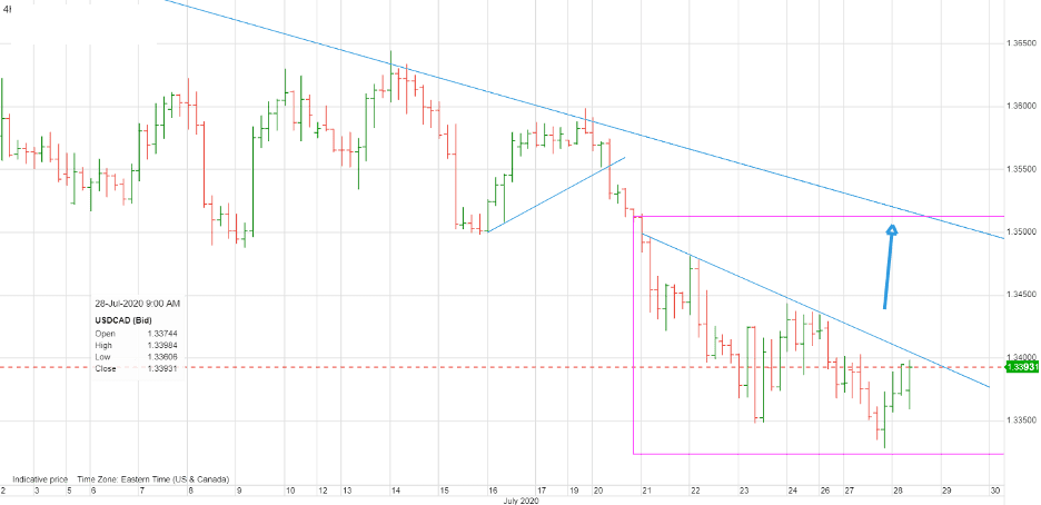 美元/加元技术面在1.3440以下看跌,这一水平能够维持在1.3540点位附近的长期下行趋势线。如果跌破1.3330,有可能进一步跌至1.3240,如果升穿1.3440,则可能进一步涨至1.3540。