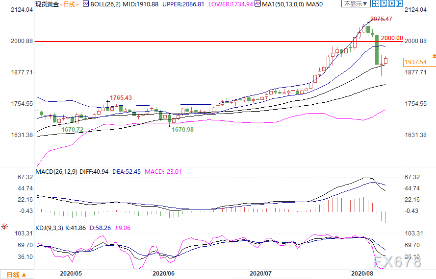 下方初步支撑先留意日内低点1912.87;若跌破料回测1900关口支撑性。进一步支撑下看前一交易日低点1863.16,甚至可能跌至50日均线1835.00附近。