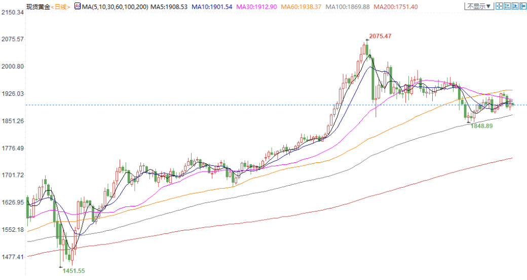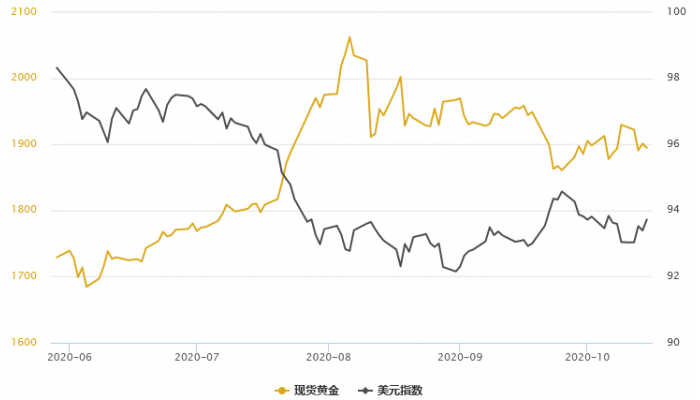 周四(10月15日)现货黄金冲高回落,美元指数创一周新高,美国新刺激谈判踟蹰不前。日内黄金波动不足15美元,围绕1900这一关键整数心理水平展开拉锯。在波动率下滑的情况下,市场可能需要更久时间的震荡。