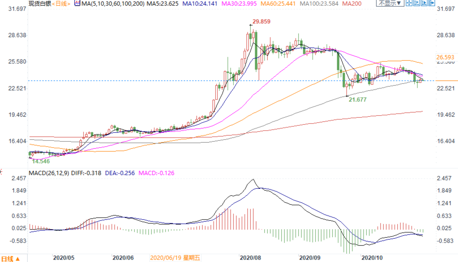 解析:走势整体跟随黄金,并未表现出工业属性的强劲需求,但随着二次疫情对经济的冲击加大,白银实物需求可能加速下滑,金银比可能再度上升。