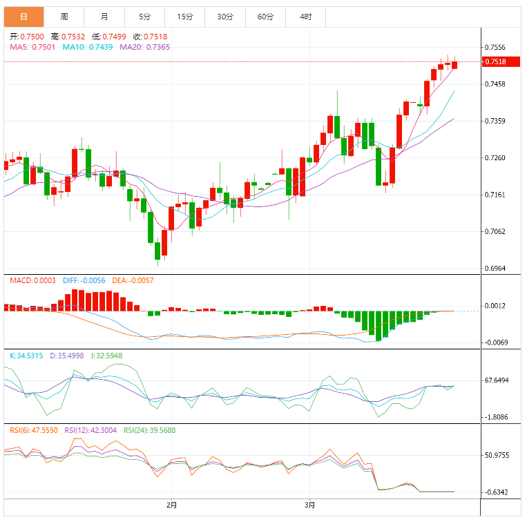 多种分化的力量的组合未能给澳元/美元提供任何有意义的推动力,导致澳元/美元在新一周的第一天出现了温和/窄幅波动。近期大宗商品价格大涨,继续为资源类澳元提供部分支撑,但持续的美元买盘抑制了澳元的大幅上涨。
