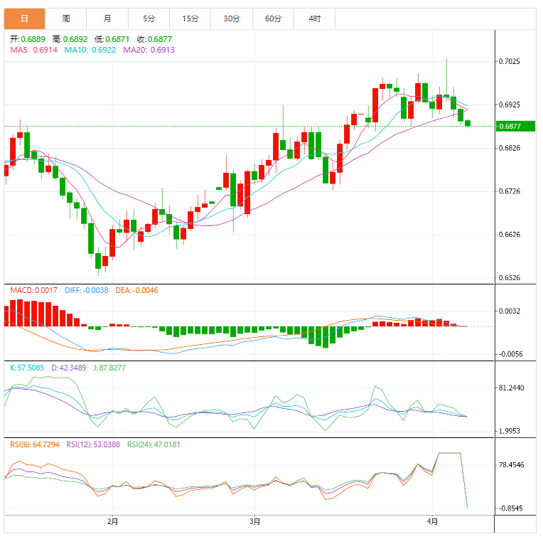 阻力位:0.6961 0.7001 0.7034