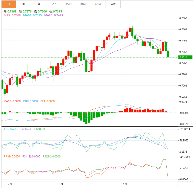 阻力位:0.7442 0.7497 0.7536