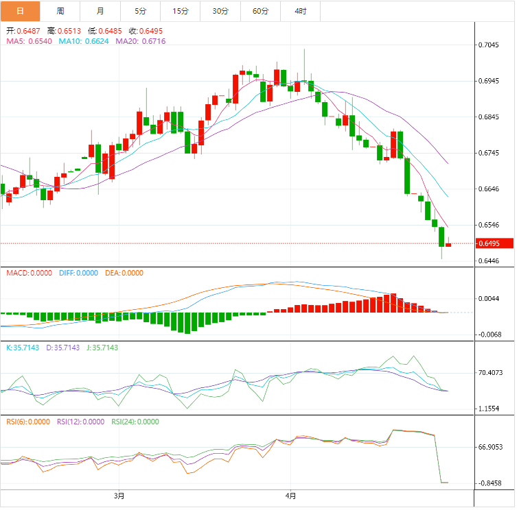 阻力位:0.6543 0.6597 0.6642
