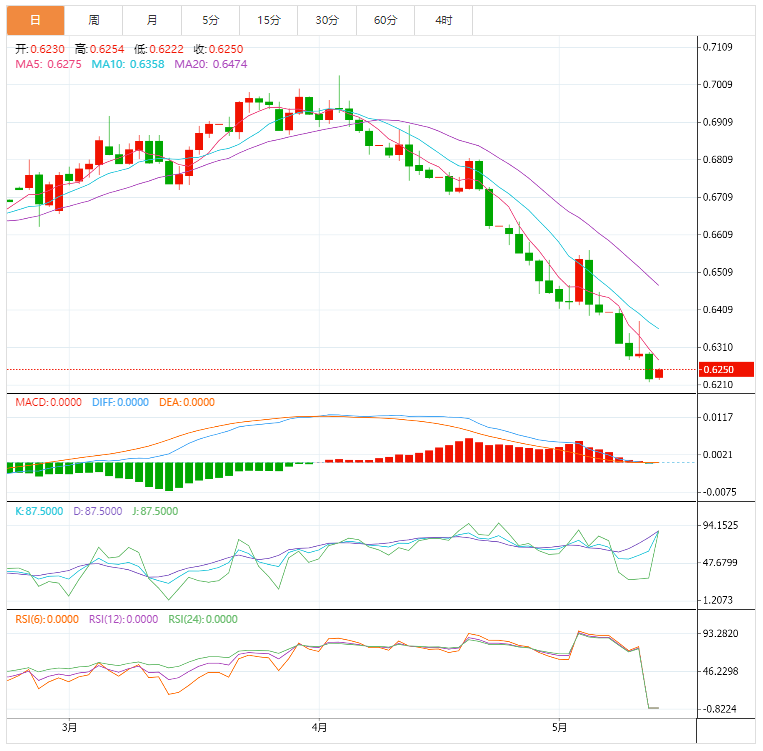技术分析,除非突破2020年中期的低点0.6380附近,纽元兑美元价格很容易测试2020年4月的峰值0.6176。