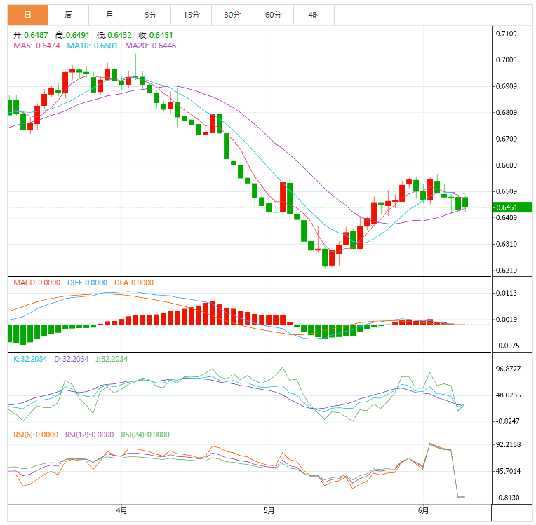 阻力位:0.6489 0.6521 0.6548