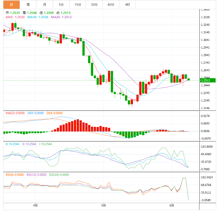 与此同时,若日收在两个月阻力位上方,接近1.2555,则可能以1.2665附近的5月高位为目标。
