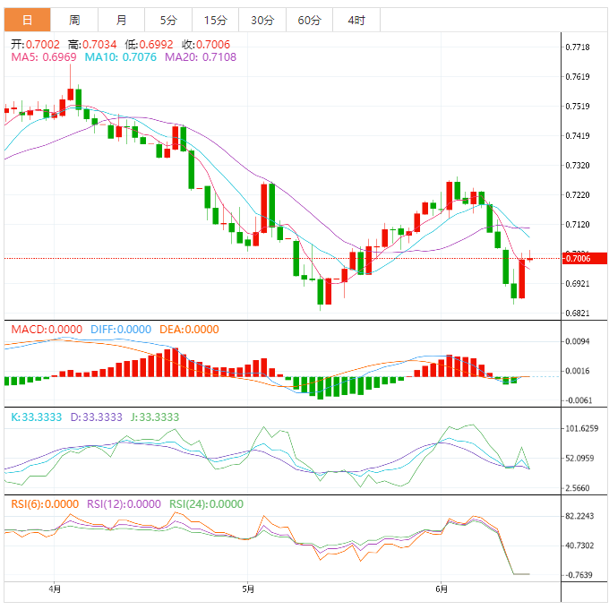 阻力位:0.7064 0.7127 0.7228