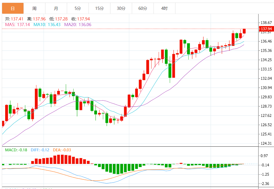 预期交易区间在 137.40 支撑位和 139.00 阻力位之间