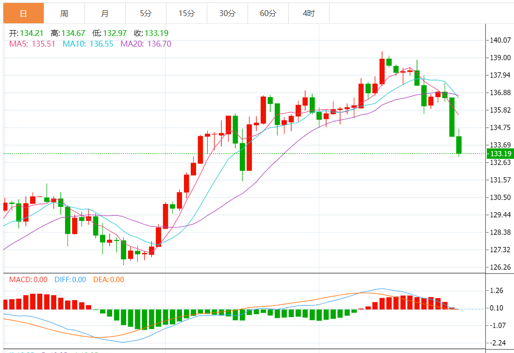 预期交易区间在 132.90 支撑位和 134.55 阻力位之间