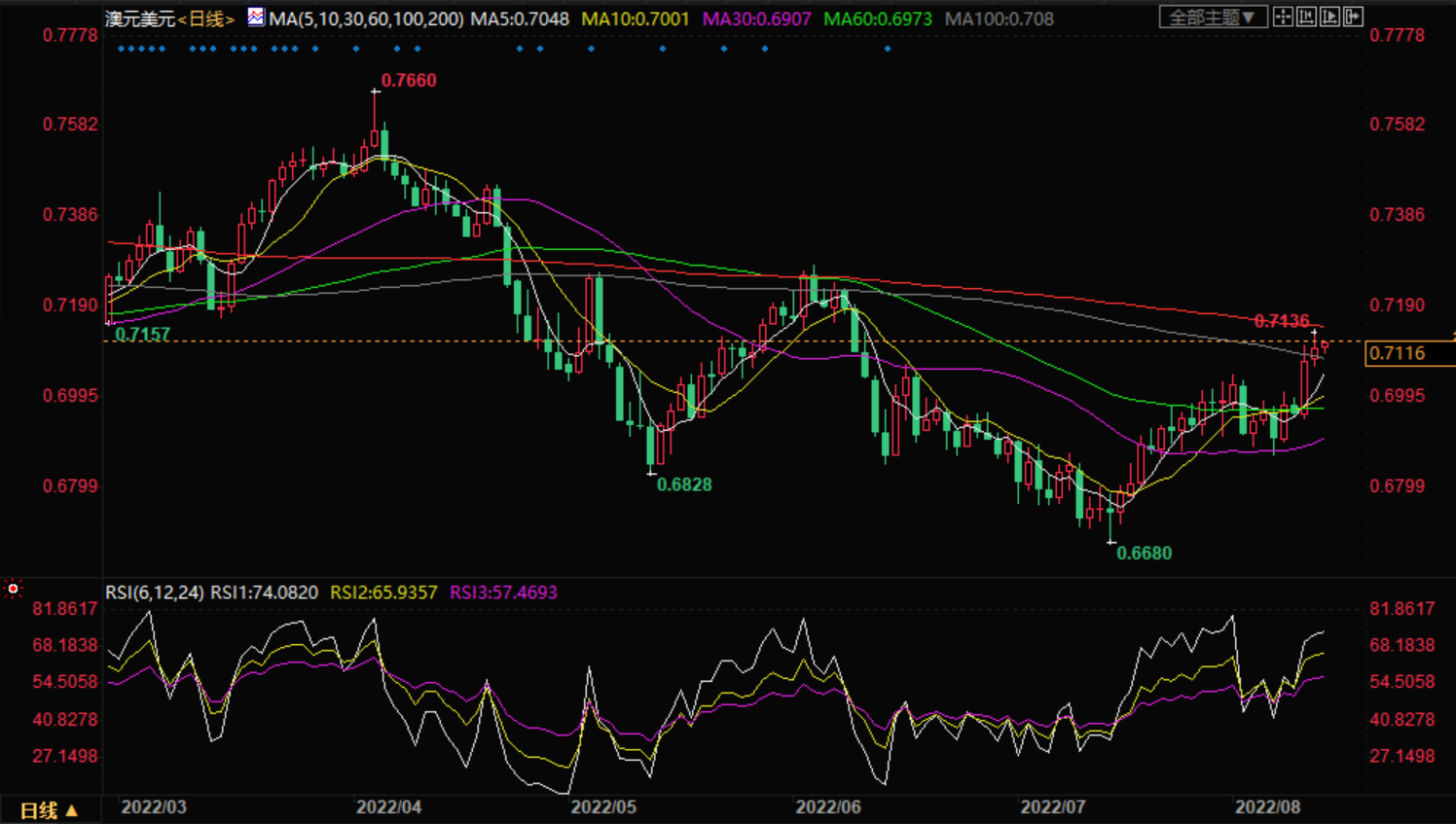 阻力位:0.7174 0.7243 0.7348