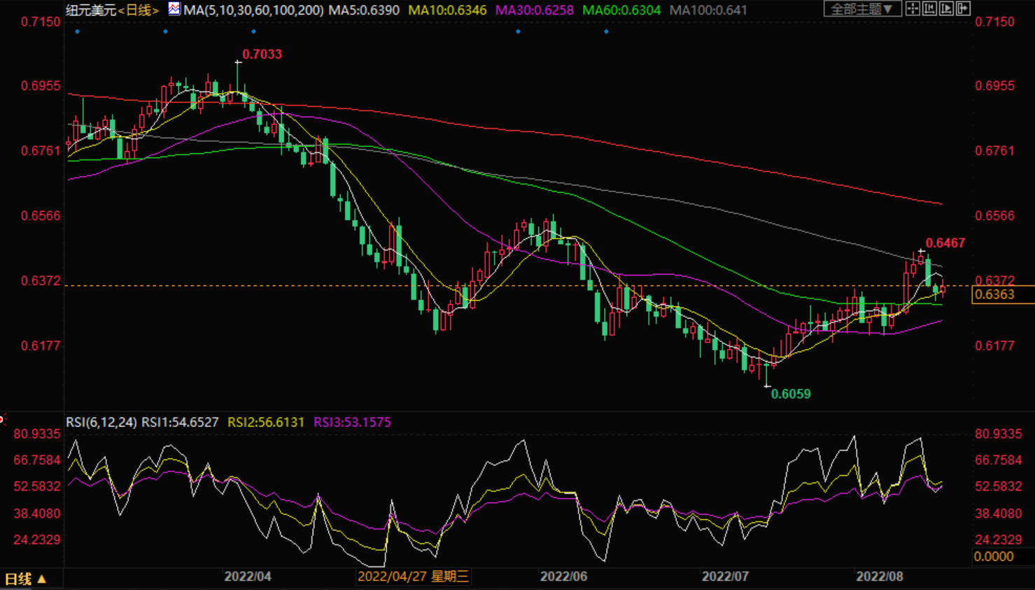 阻力位:0.6388 0.6428 0.6464